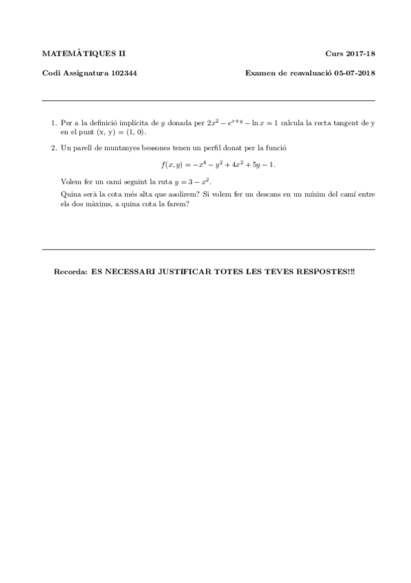 Exàmens Matemàtiques II