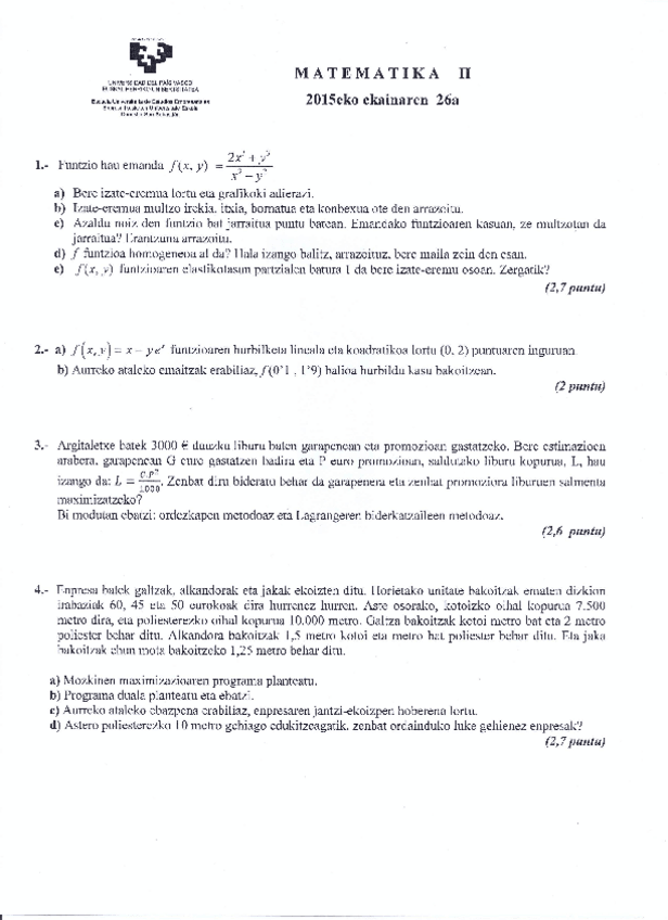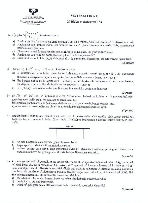 Matematika II - Azterketa ebatziak