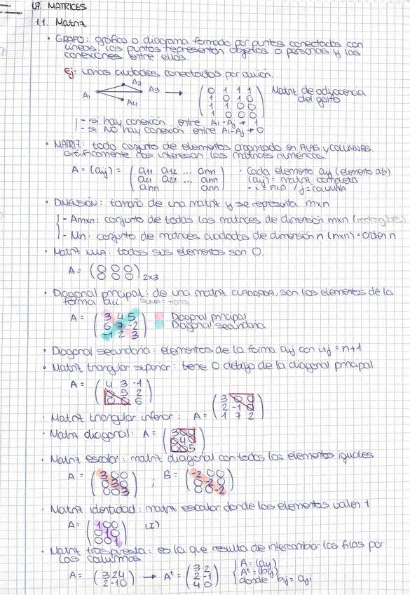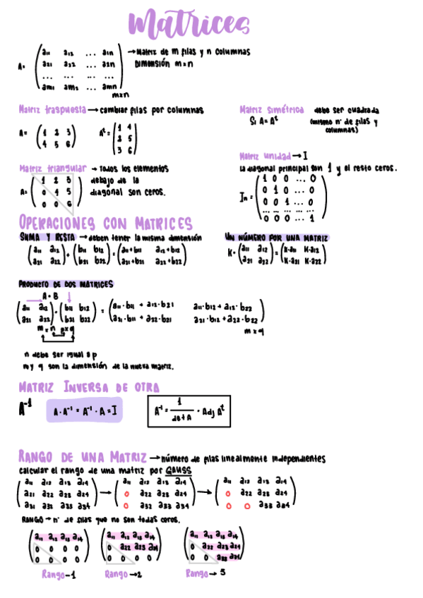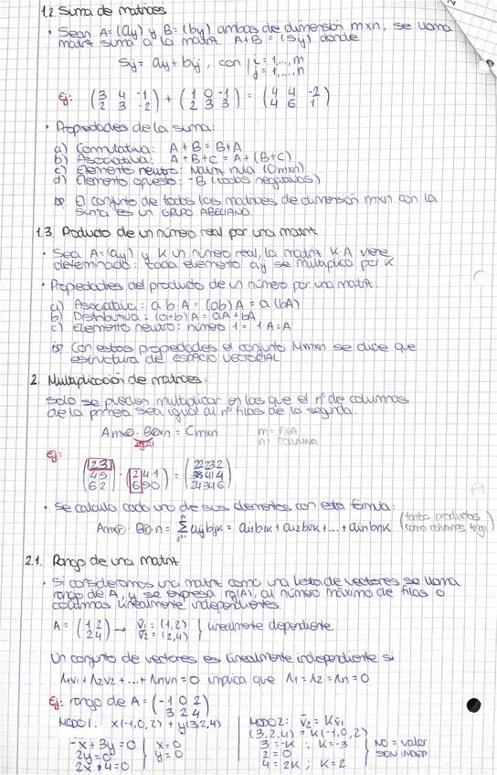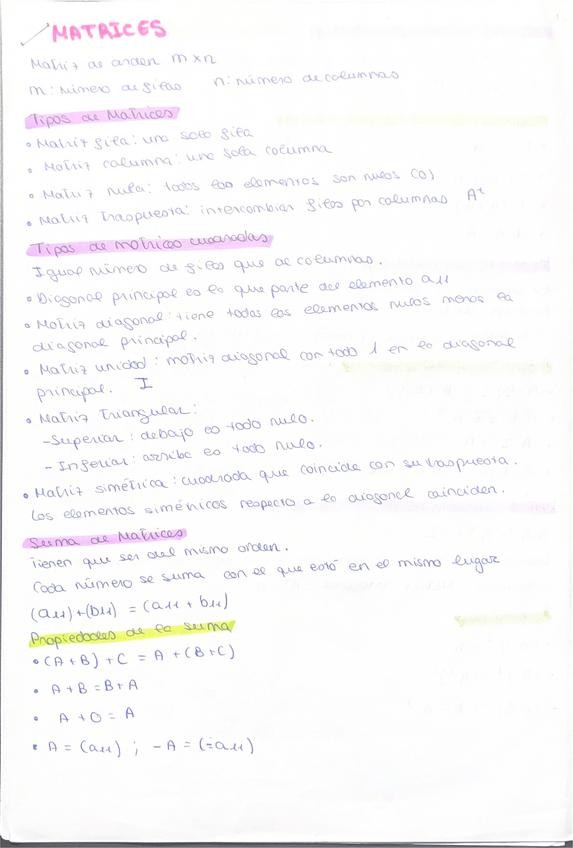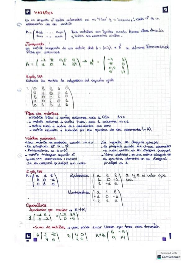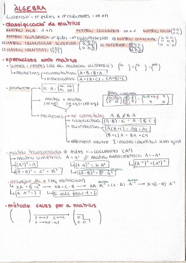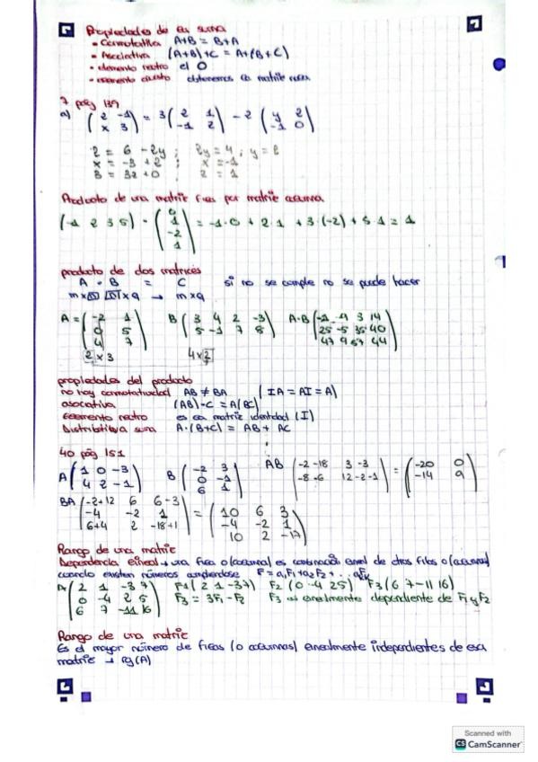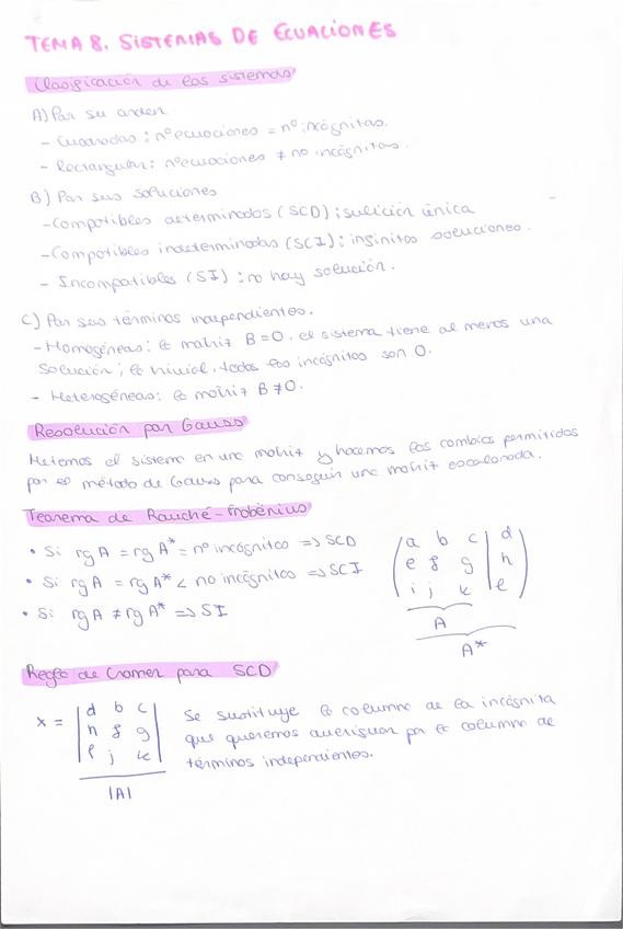 Resumen completo en 3 hojas del temario de álgebra para la PAU.