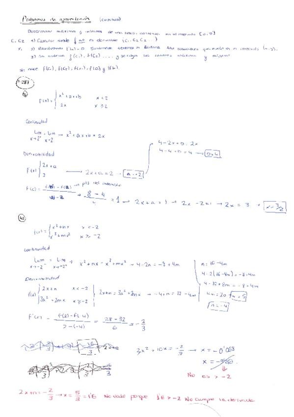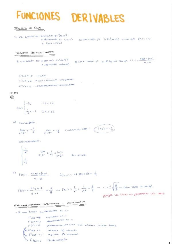 Ejercicios con soluciones funciones derivables