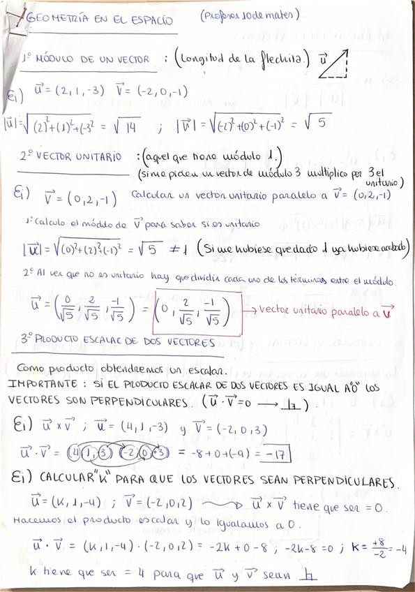Apuntes y ejercicios de la parte de matemáticas de geometría. Del 2025. Madrid