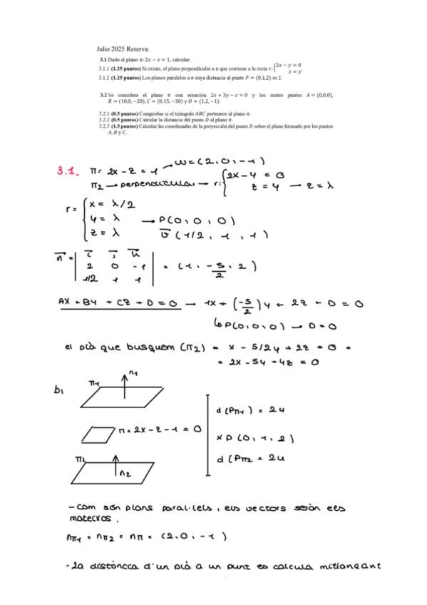 Ejercicio geometría EBAU Julio 2025 reserva