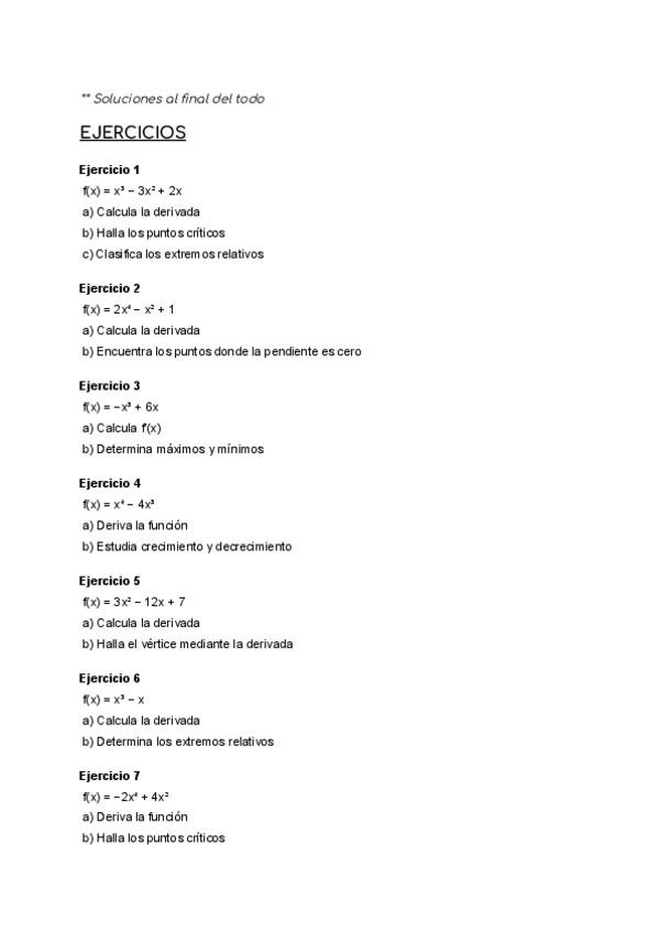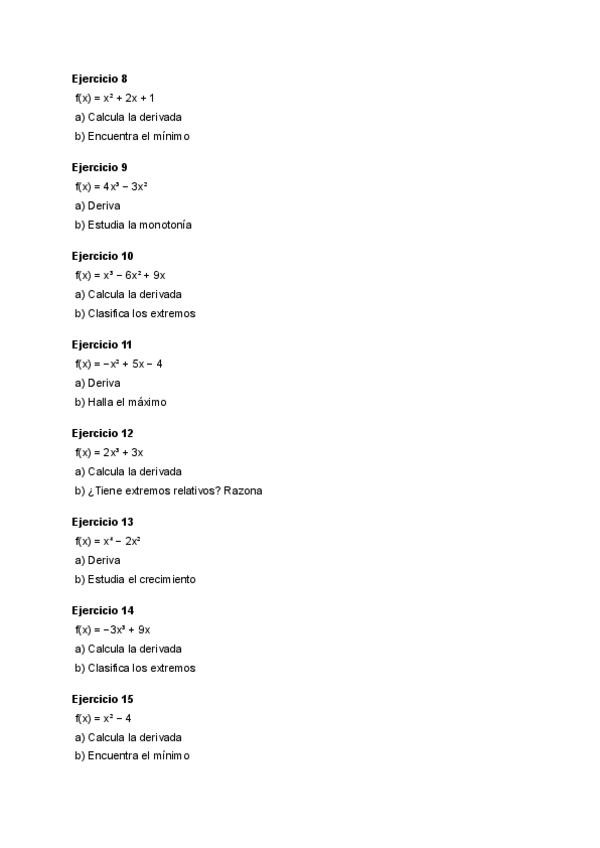 ejercicios de todo tipo para practicar derivadas y aplicaciones