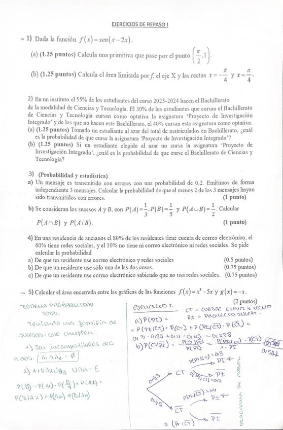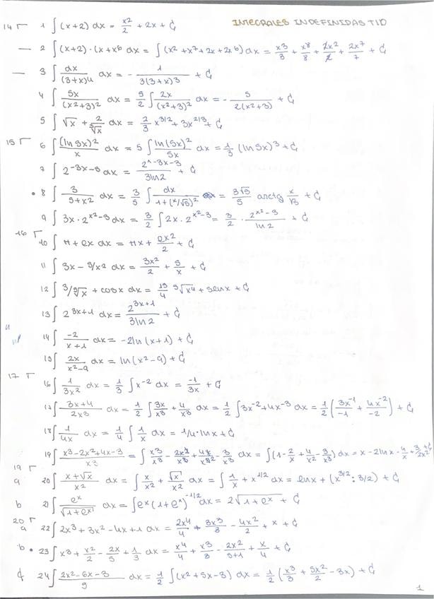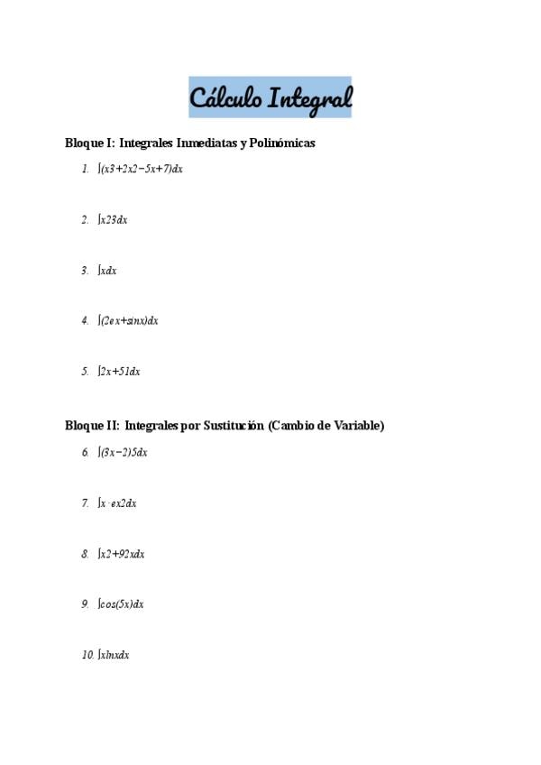 Aquí te dejo unos ejercicios de cálculo integral para repasar. Nivel 2º de Bach. Al final del documento encontrarás las soluciones.