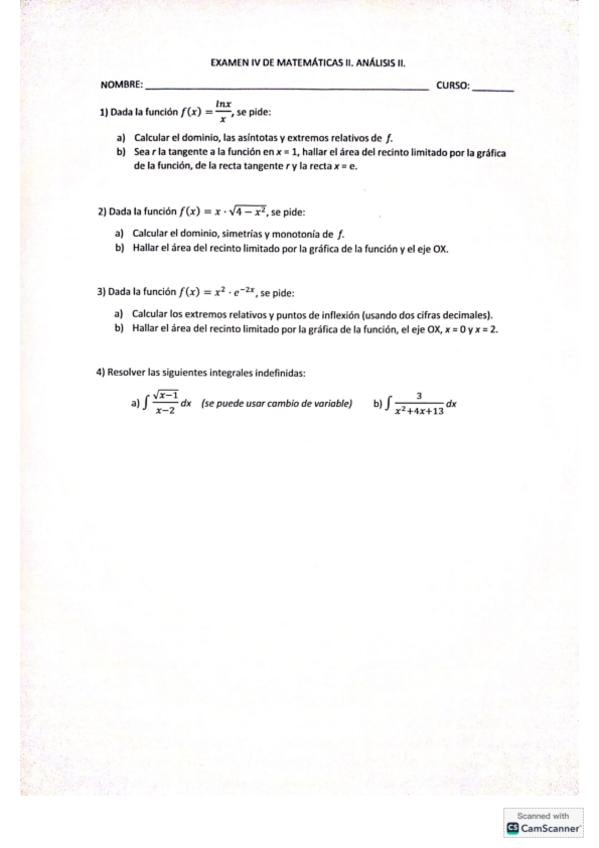 Exámenes del bloque de análisis II de los años 2024 y 2025