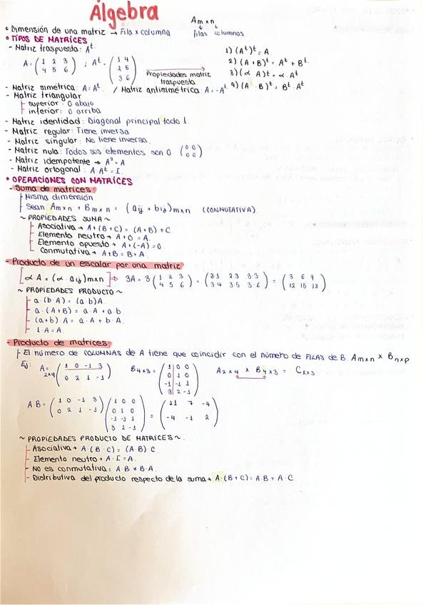 Resumen completo de toda la asignatura Matemáticas II en 3 carillas. Saqué un 8.5 en el examen de Matemáticas II en selectividad.