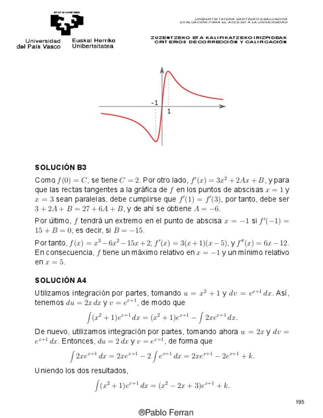 Cuadernillo PAU Matemáticas II País Vasco
