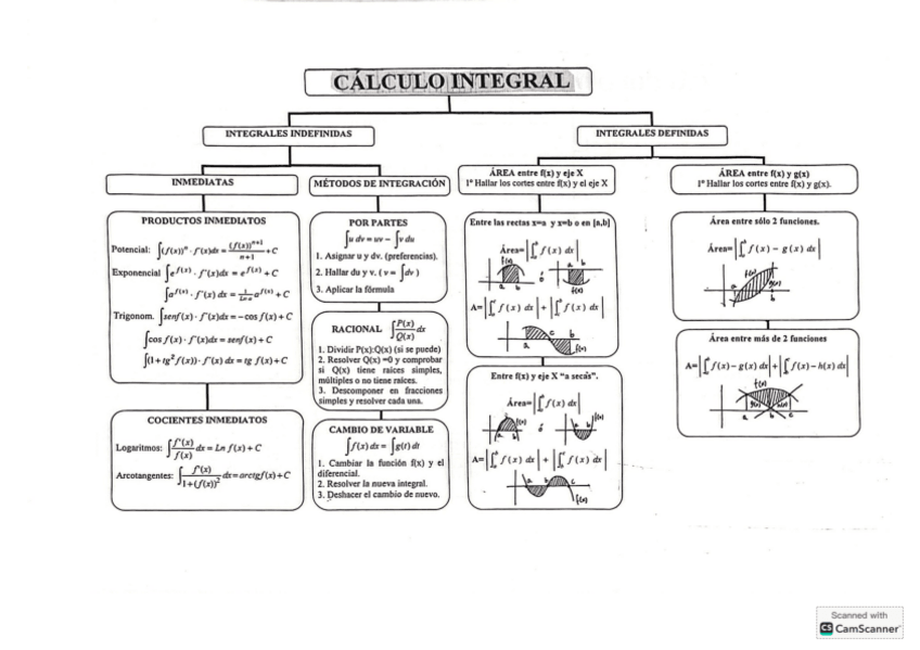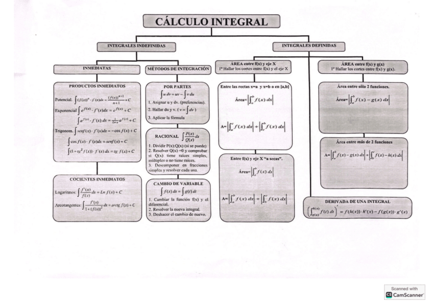 Apuntes Bloque Análisis: Integrales. Integrales indefinidas, Integrales inmediatas y casi inmediatas, Métodos de integración: cambio de variable, integración por partes, por descomposición en fracciones..., Tabla de integrales e Integral definida: regla