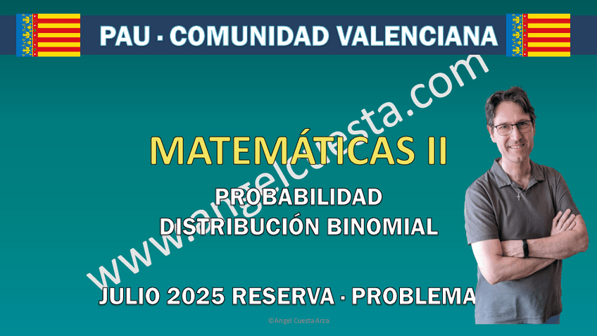 Examen de matemáticas II de la PAU de la Comunidad Valenciana de Julio de 2025, examen de reserva. Los 7 ejercicios están resueltos con todo detalle. En YouTube puedes ver todas las explicaciones con más detalle todavía.