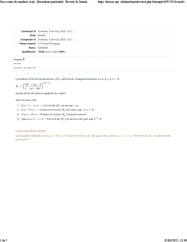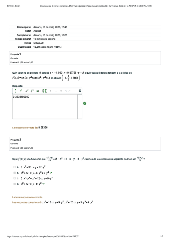 He publicado nuevos test de 1º Matemáticas II: M2 Qüestionaris ATENEA