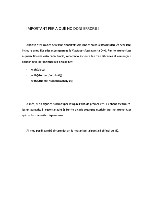 He publicado nuevos apuntes de 1º Matemáticas II: M2 - Formulari Mapple.pdf