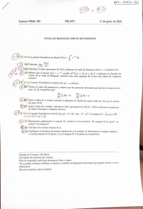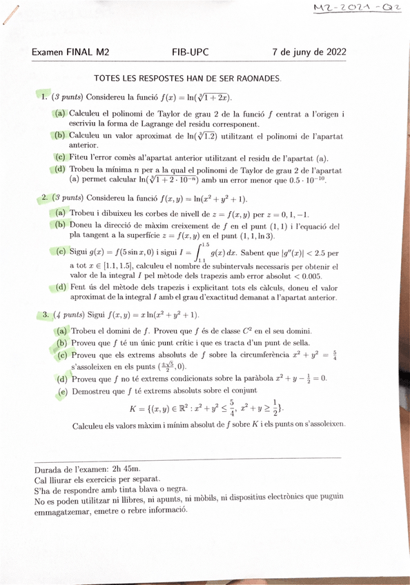 Són examens resolts a mà, amb tot el procediment.