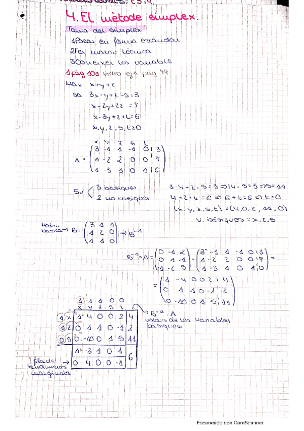 He publicado nuevos apuntes de 1º Matemáticas II: tabla simplex