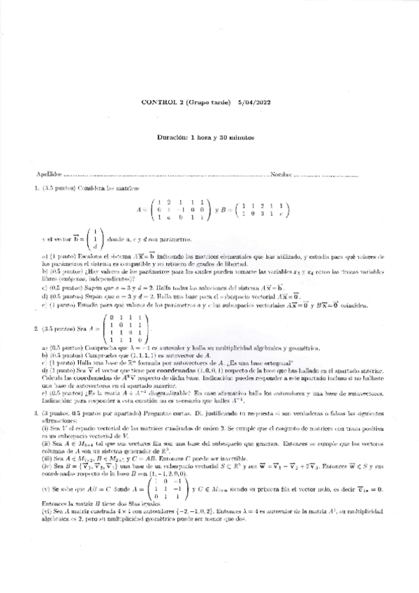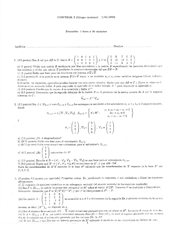 He publicado nuevos examenes de 1º Matemáticas II: CONTROL-2-2021-22MANANA.pdf