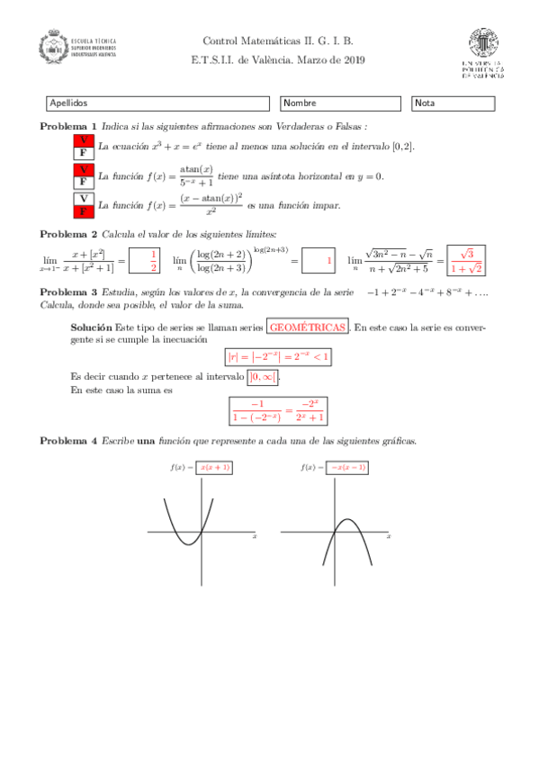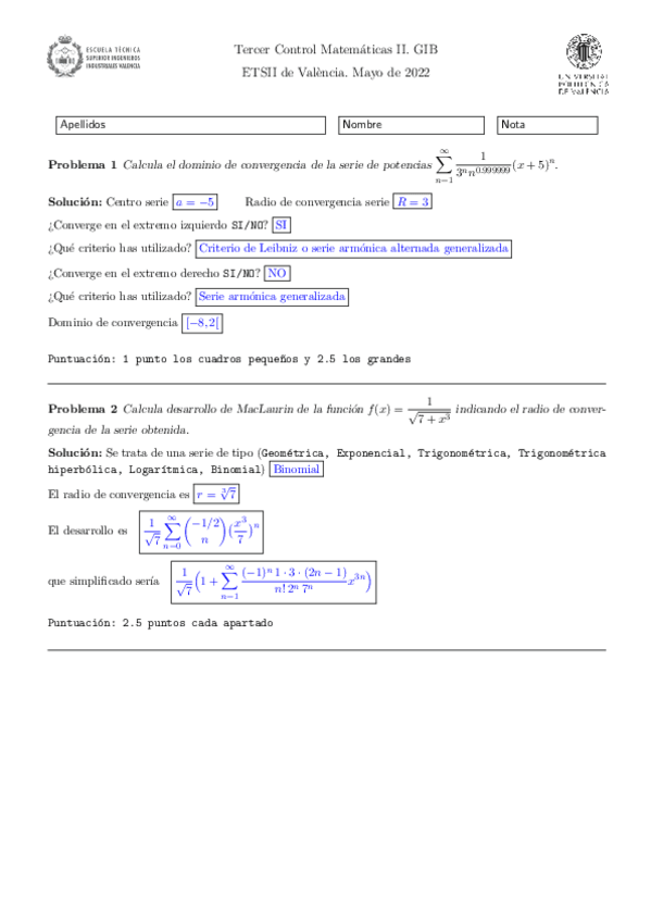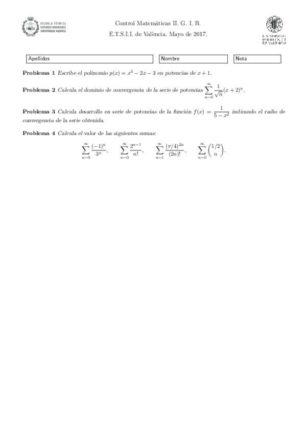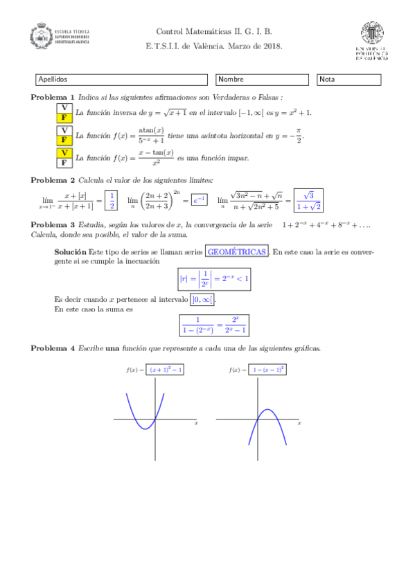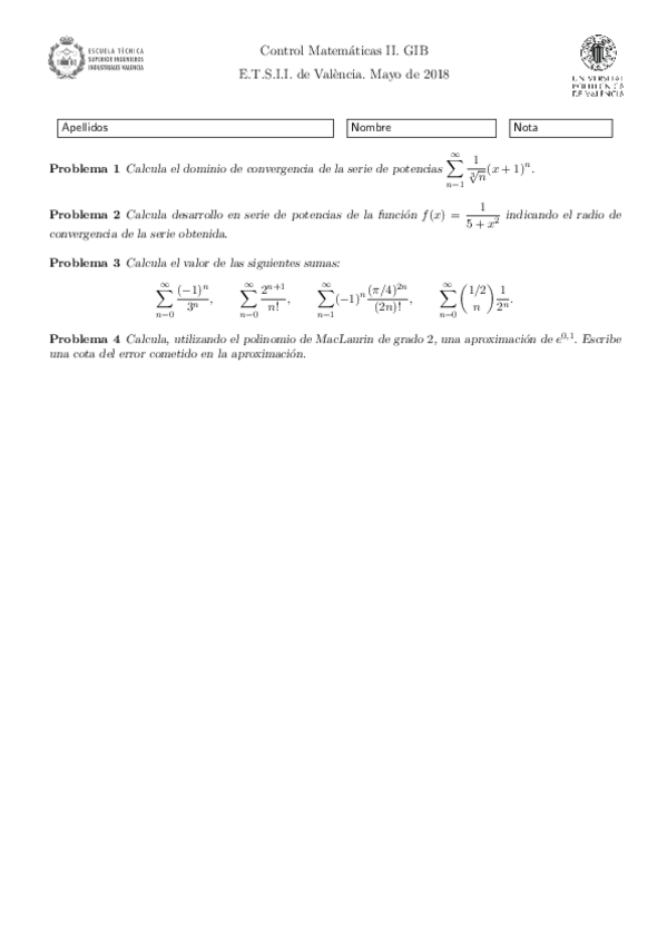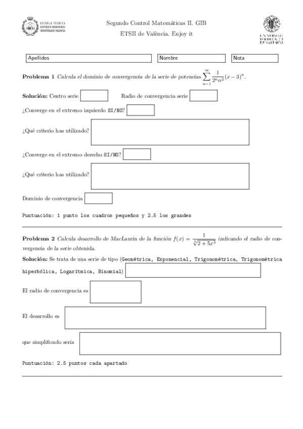 Controles MATEMÁTICAS II