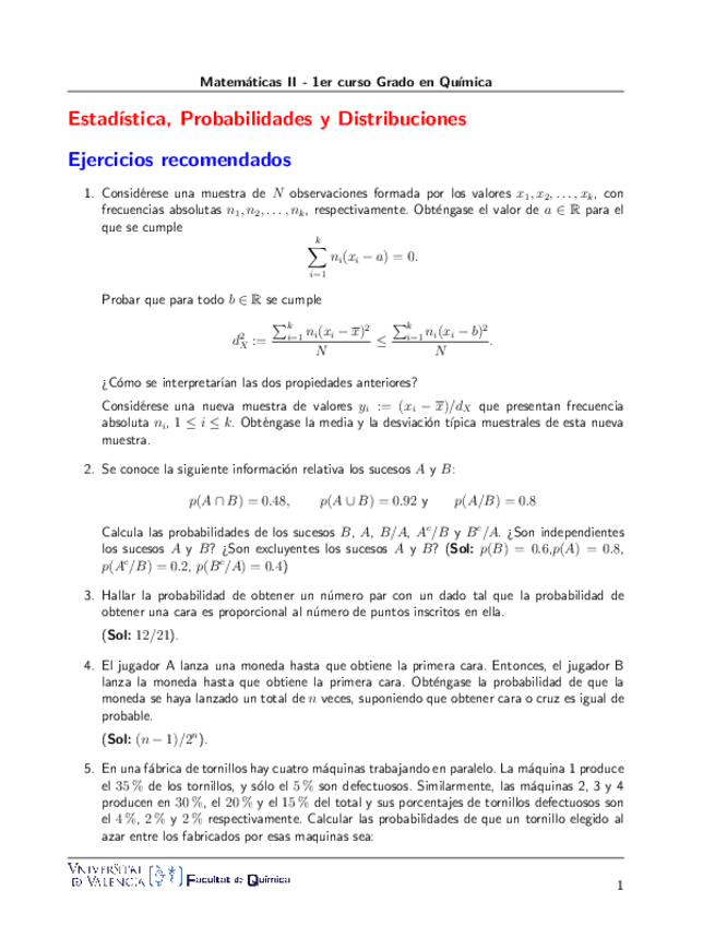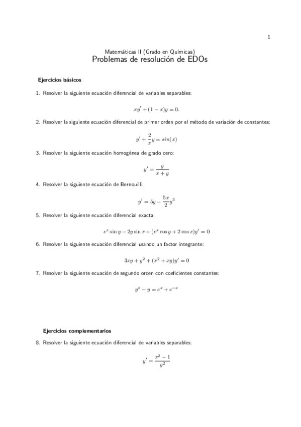 Ejercicios Matemáticas II