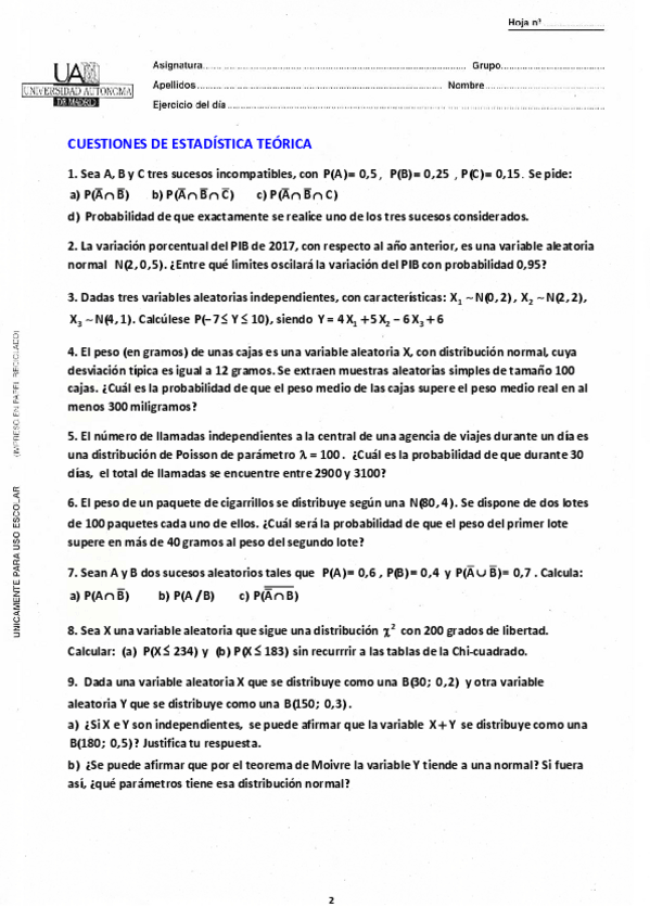 Varios documentos con ejercicios de exámenes (enunciados)