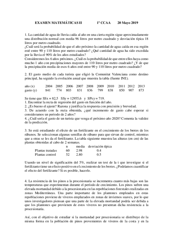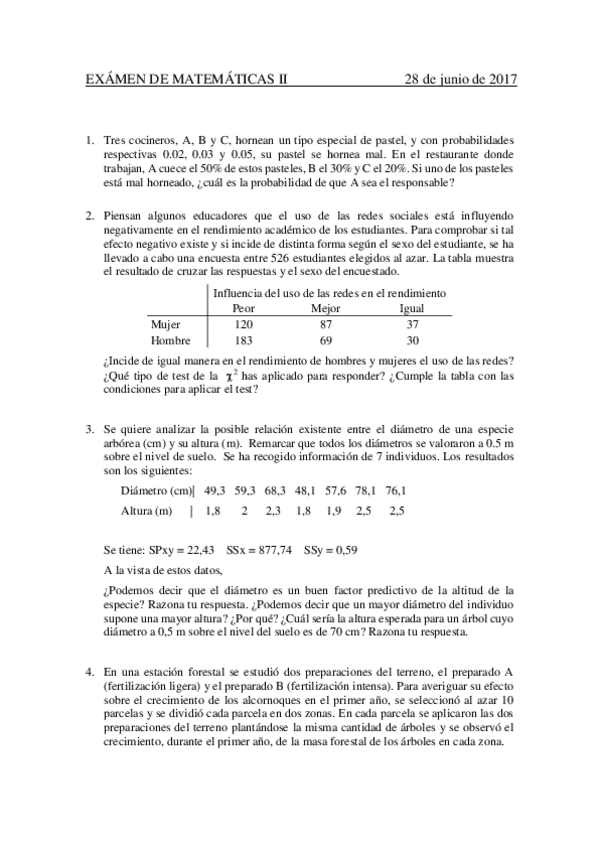 Exámenes de Matemáticas II