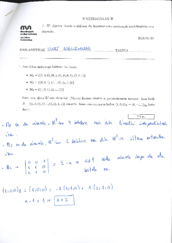 He publicado nuevos examenes de 1º Matemáticas II: mateII_KP2y3