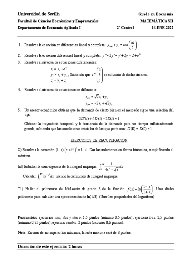 He publicado nuevos examenes de 2º Matemáticas II: Ecuaciones-en-Diferencia-EXAMENES-RESUELTOS.pdf
