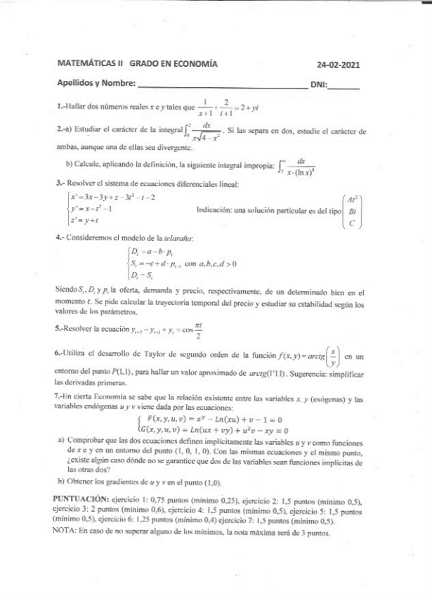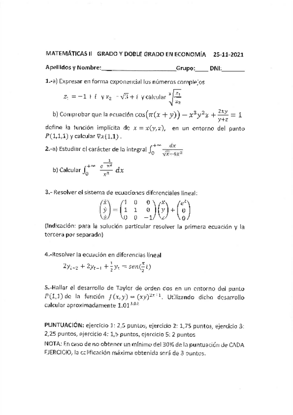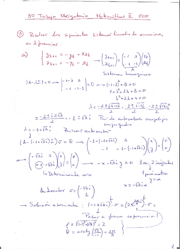 Mates II ECO Trabajo Obligatorio 3º Solución