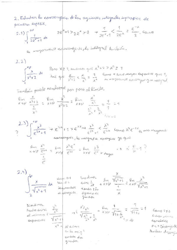 Ejercicios hecho en clase de integrales, algunos son del boletin, otros de exámenes etc. Están explicados