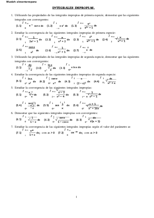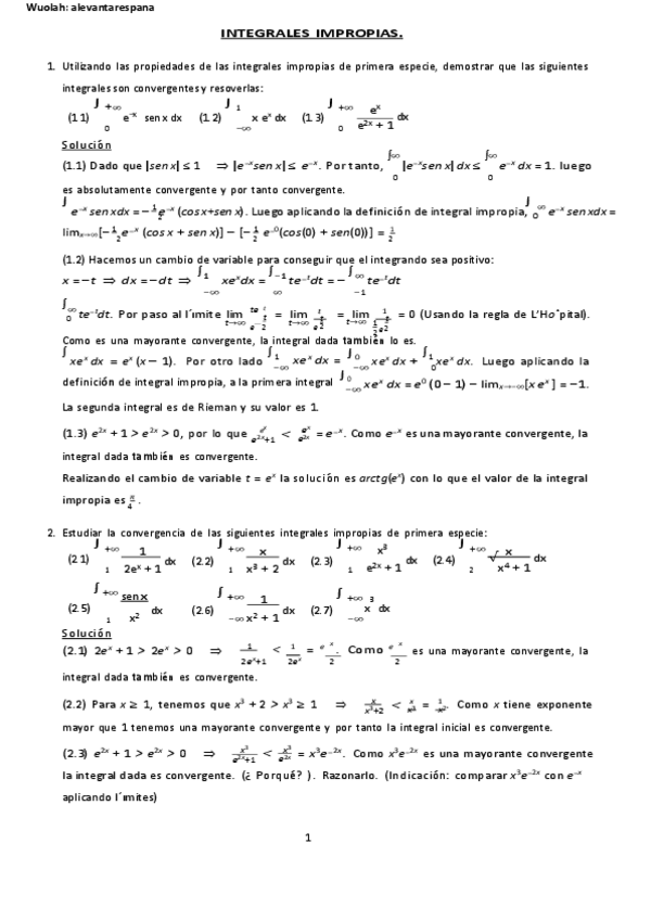 He publicado nuevos ejercicios de 2º Matemáticas II: Integrales-Impropias-BOLETIN-RESUELTO.pdf