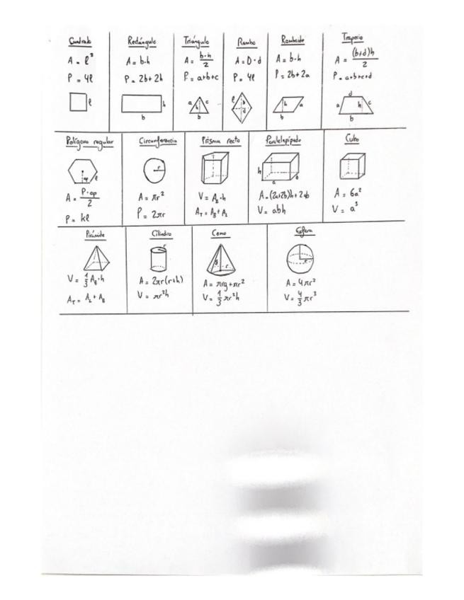 Perfecto para ejercicios de optimización en la PAU. Resumen de todas las áreas y volúmenes.
