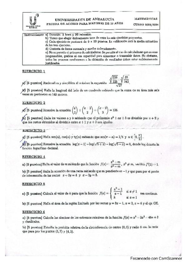 PRUEBA DE ACCESO A LA UNIVERSIDAD - COMUNIDAD DE ANDALUCÍA - 25 Y 45 AÑOS