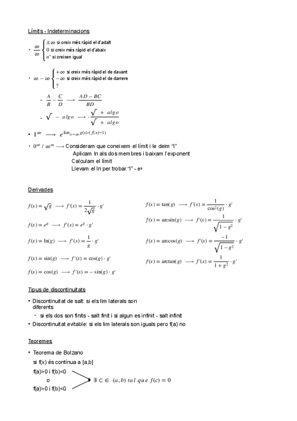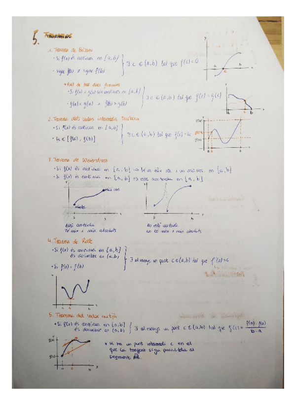 Apuntes Matemáticas Derivadas y Teoremas (Bolzano, Rolle…)