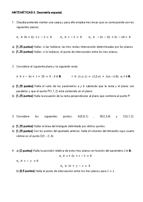 A continuación adjunto una serie de ejercicios de la relación de geometría espacial de segundo de bachillerato para practicar de cara a la PAU. Si necesitas las soluciones, escríbeme a mi instagram: @elipiomerenciano