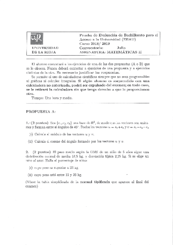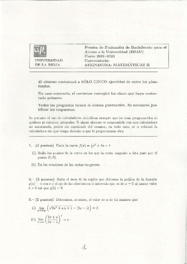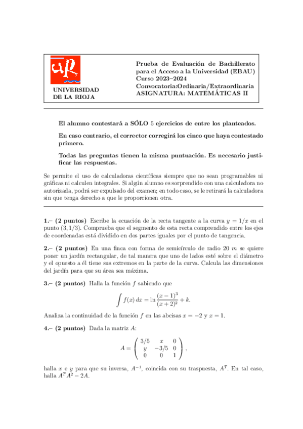 Exámenes Matemáticas II EBAU LA Rioja 2022