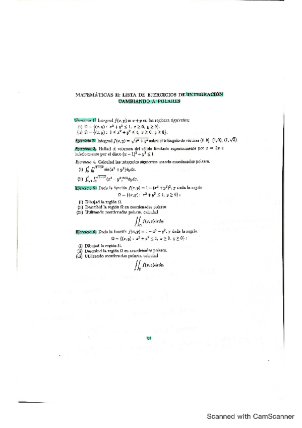 Ejercicios Matemáticas II