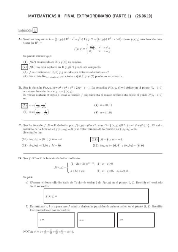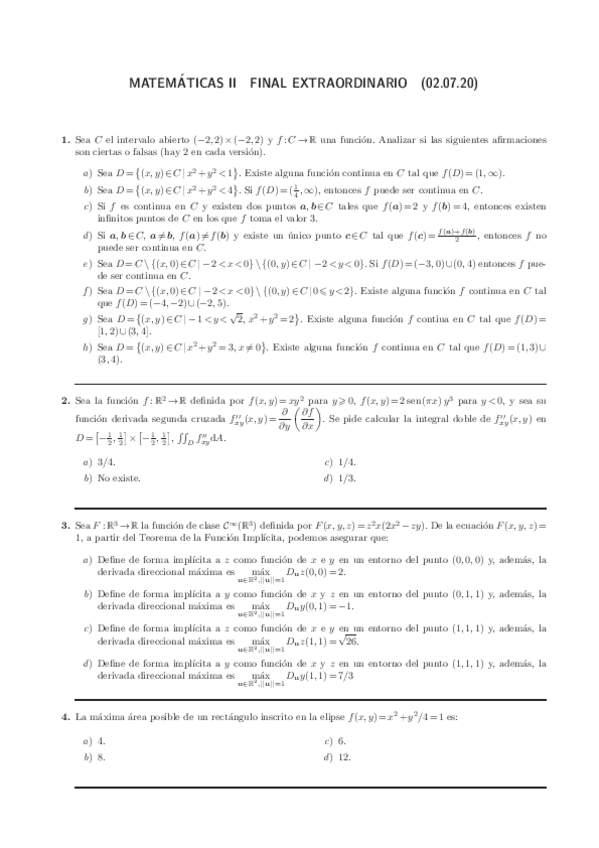Ejercicios RESUELTOS de examen (Mates II)