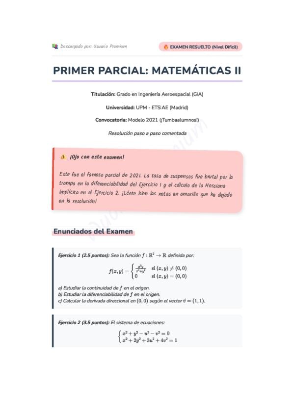 Examen Resuelto Mates II - UPM Aerospacial - Wuolah Premium