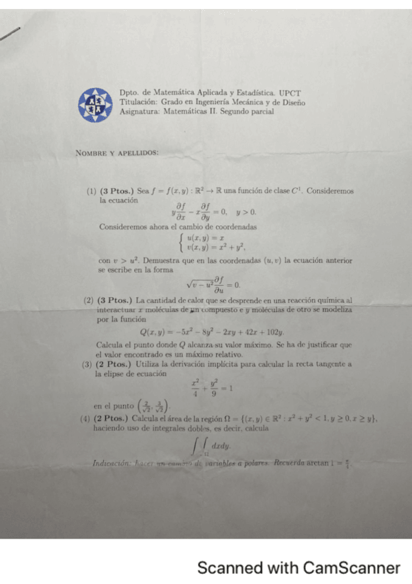Exámenes parciales Mates 2