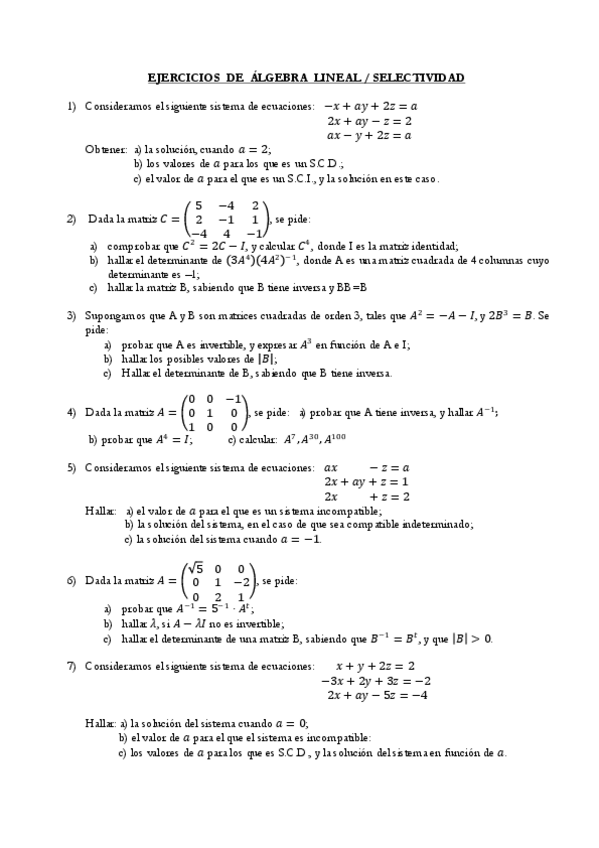Ejercicios todos los temas selectividad