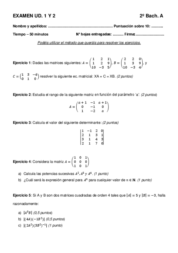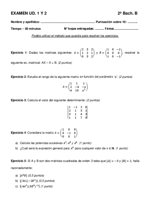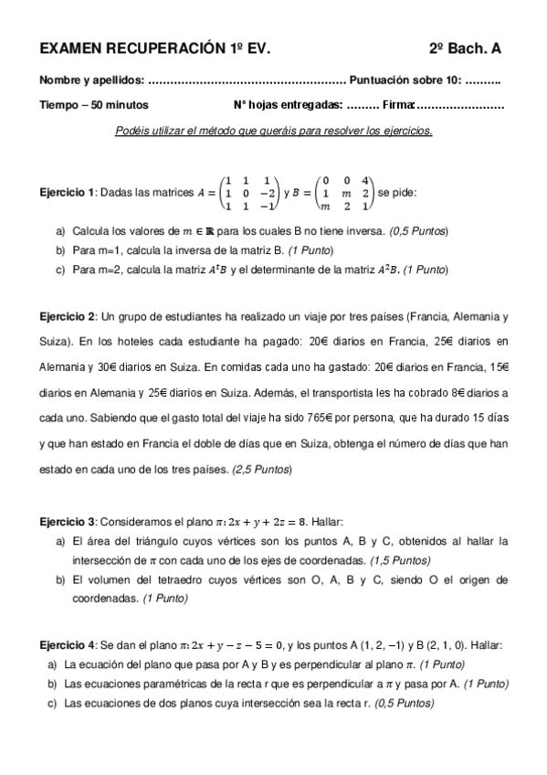 He publicado nuevos examenes de 2º Matemáticas II: Exámenes