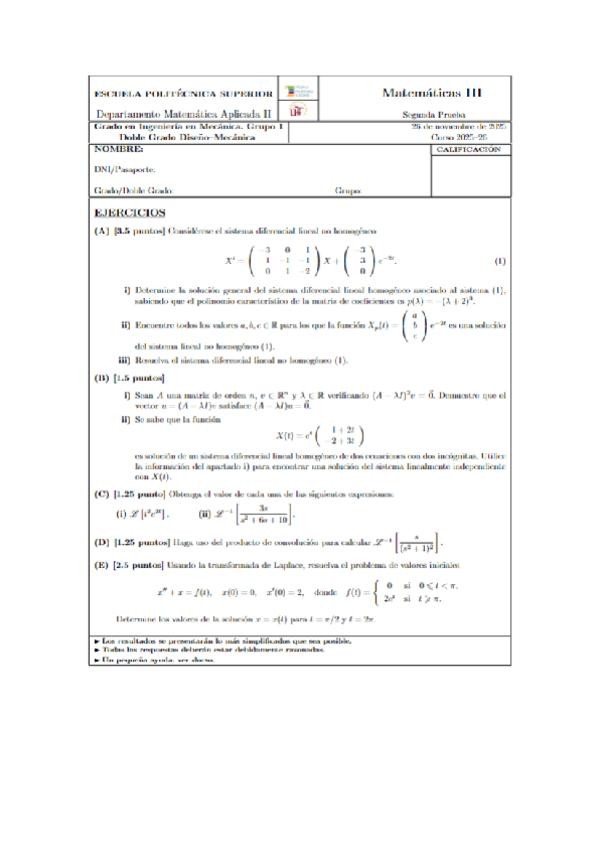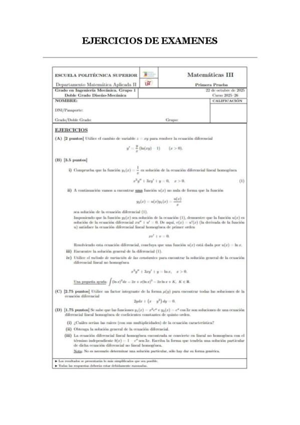 He publicado nuevos examenes de 2º Matemáticas III: Parcial-EDOs-2025-Resuelto.pdf