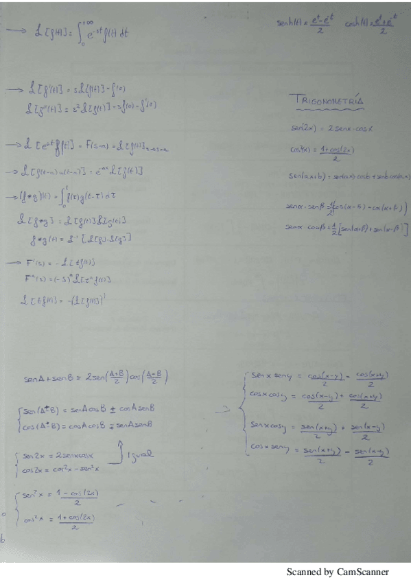 Son todas las fórmulas de suma de cosenos y similares que se suelen pedir.