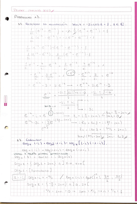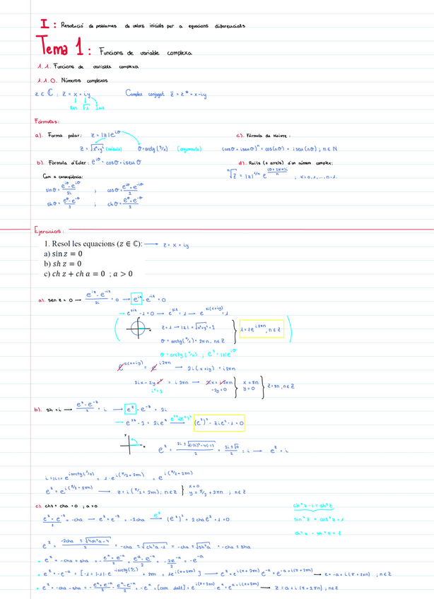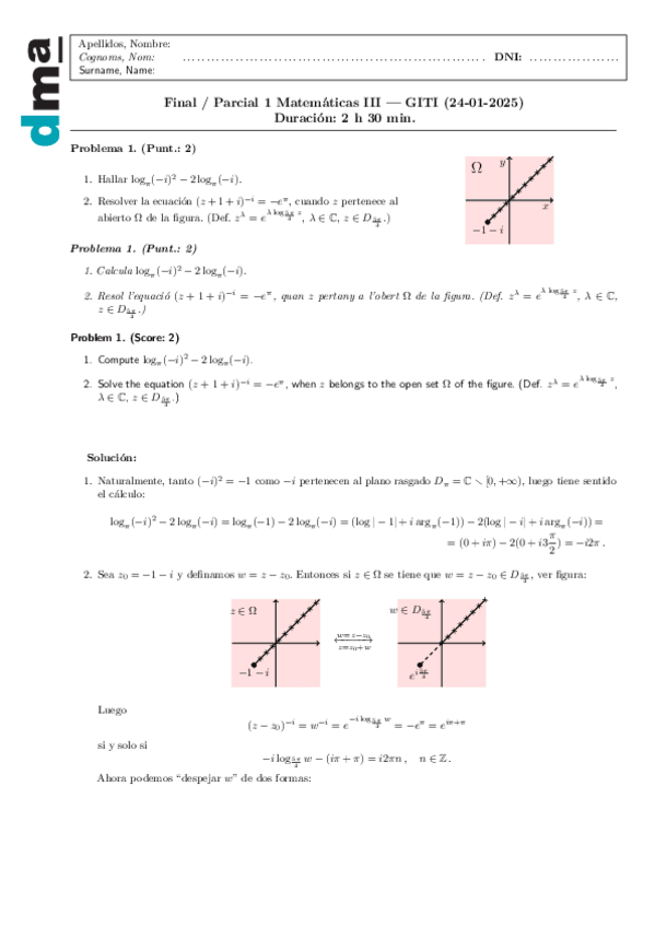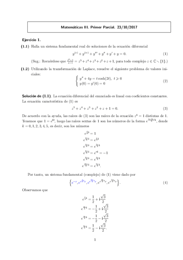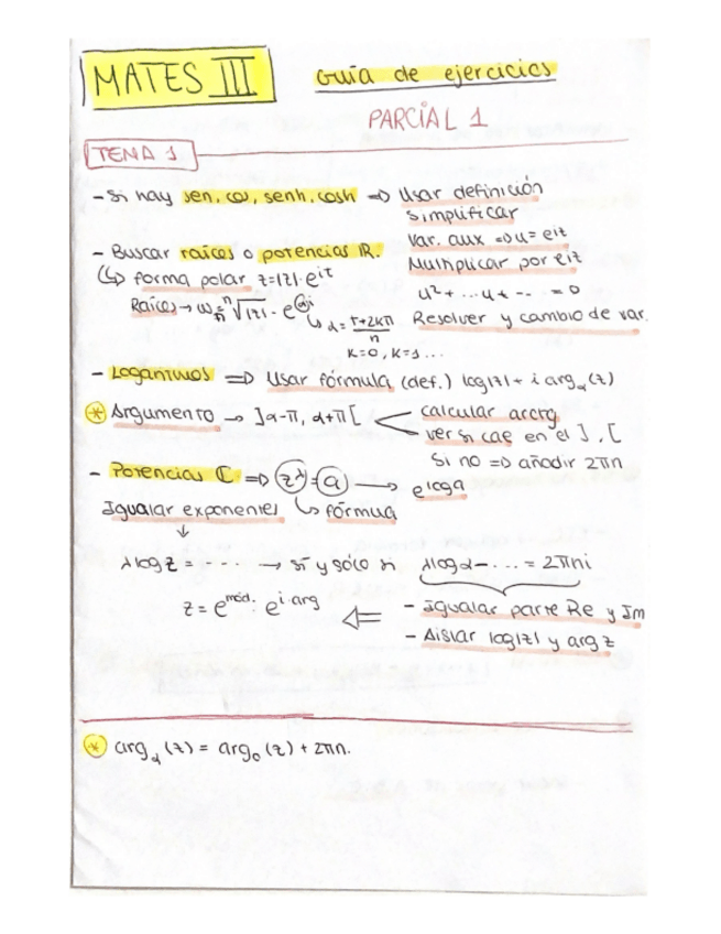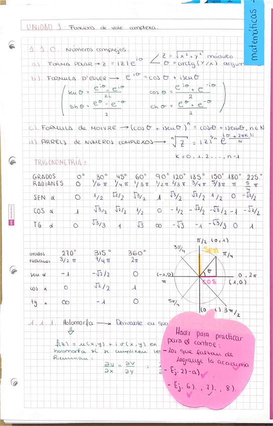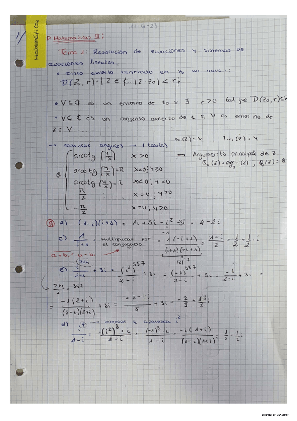 Apuntes de clase Tema 1: Funciones de Variable Compleja. Matemáticas III. PRIMER PARCIAL - Examen 1