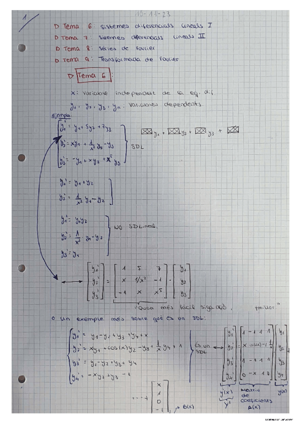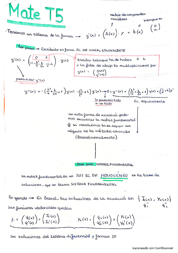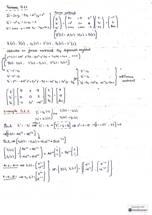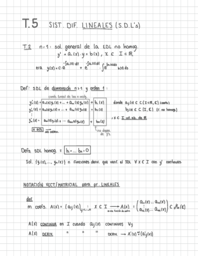 Apuntes clase de teoría Tema 5: Sistemas Diferenciales Lineales. Matemáticas III