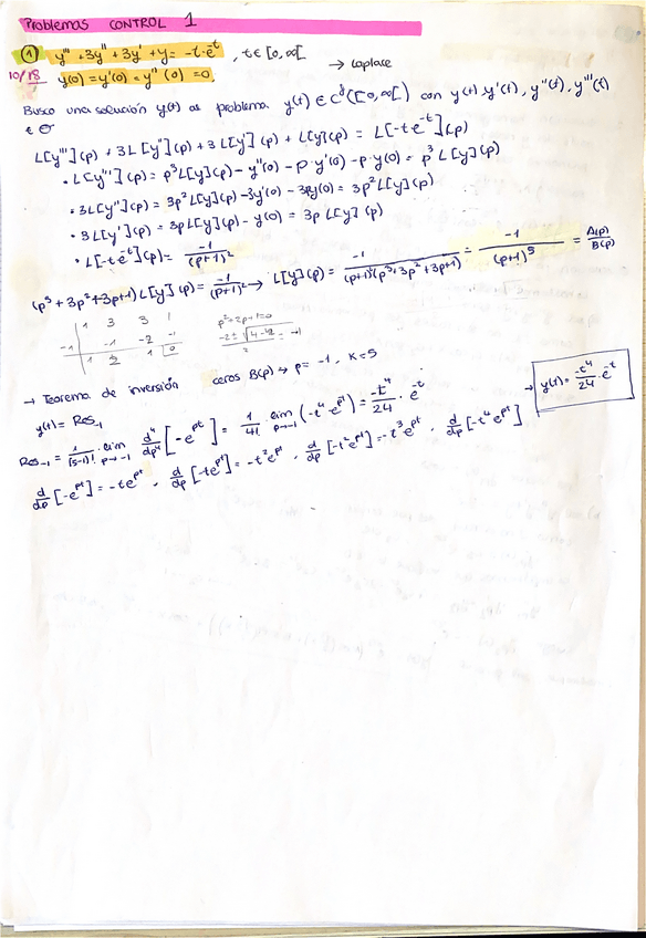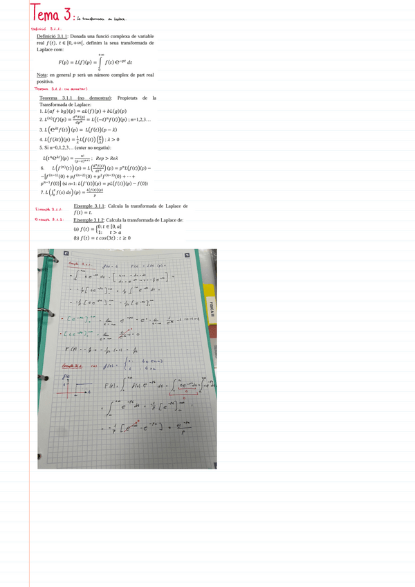 Apuntes de clase Tema 3: Transformada de Laplace. Matemáticas III. PRIMER PARCIAL - Examen 1