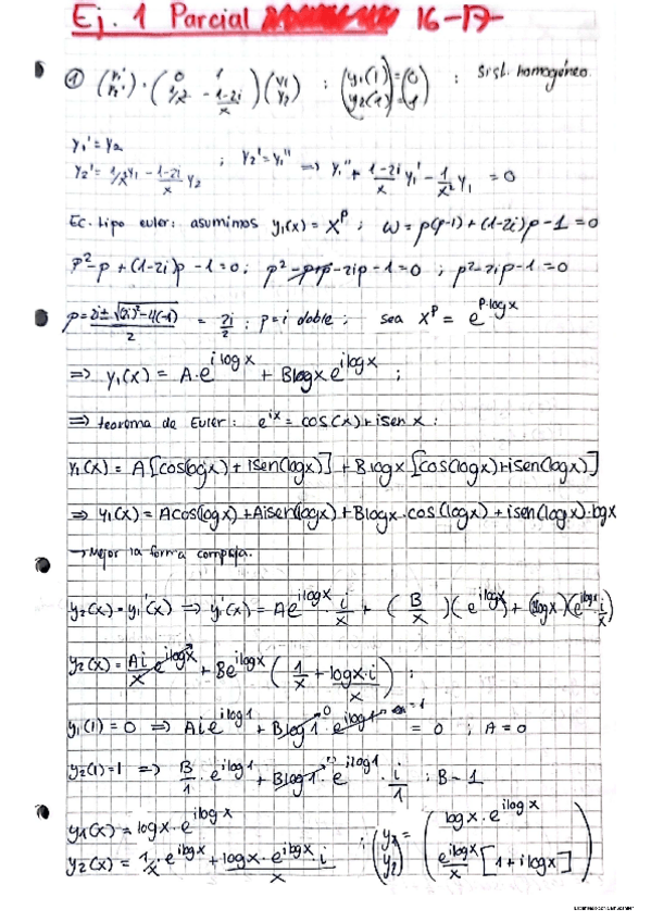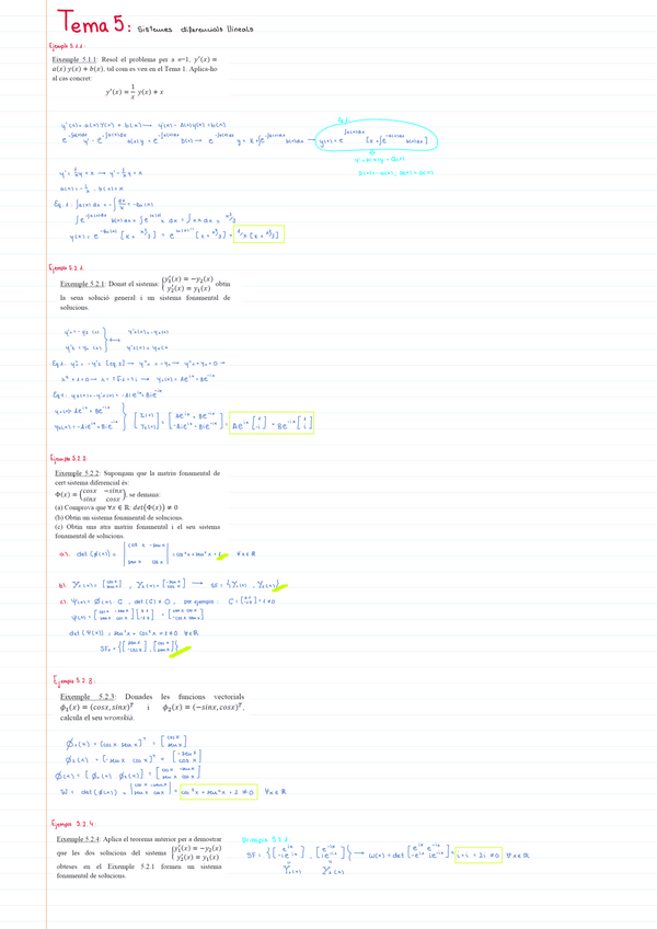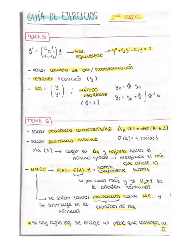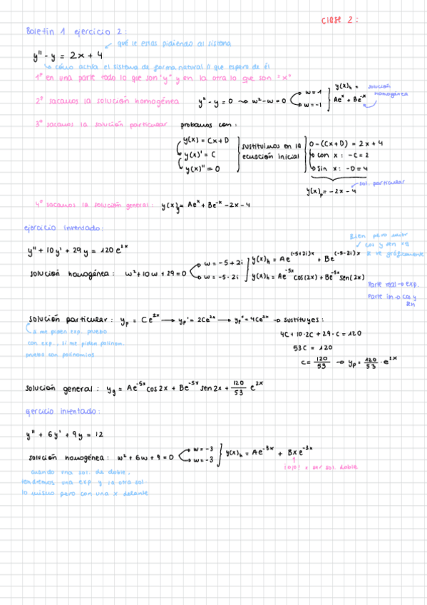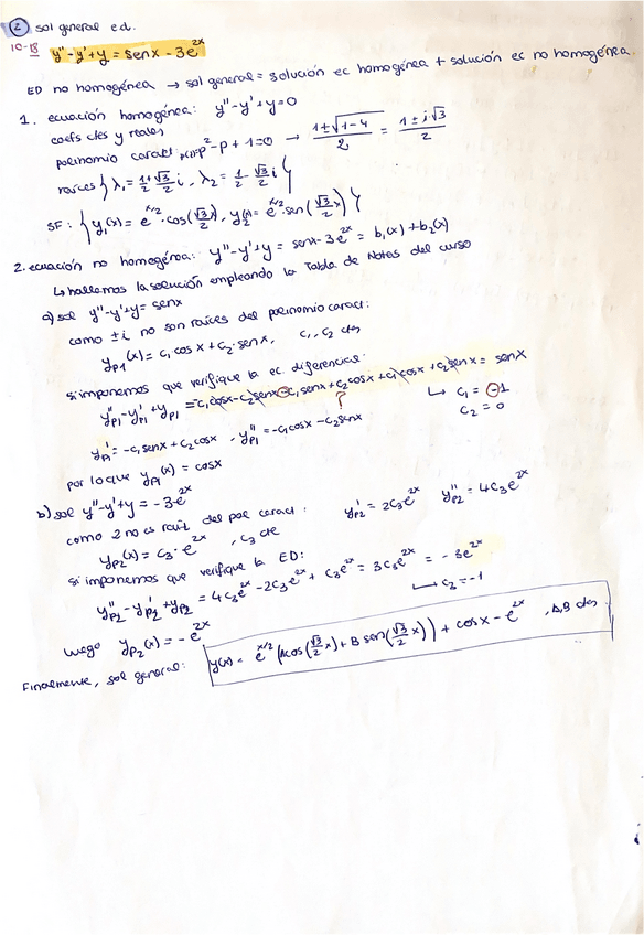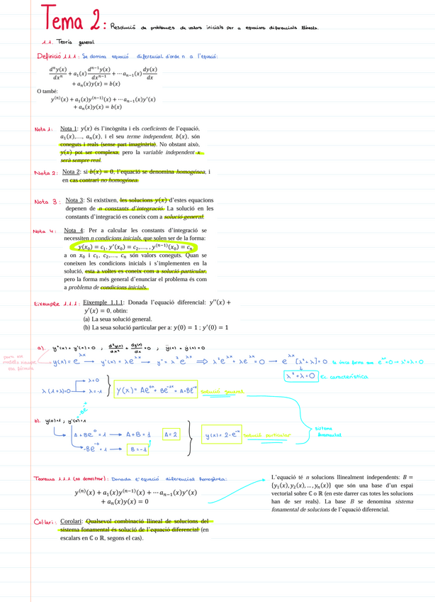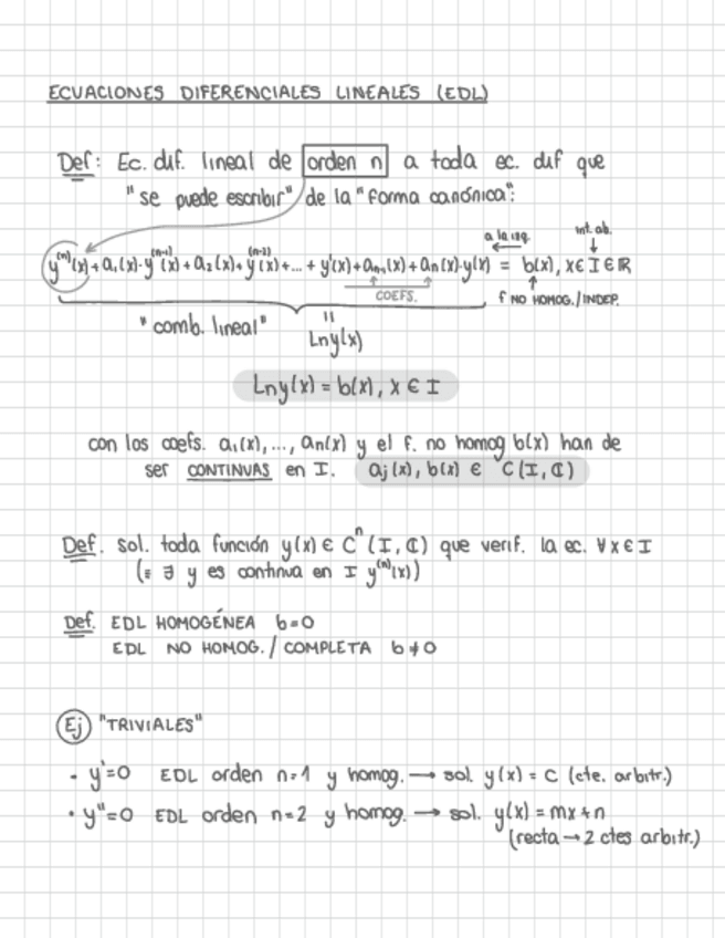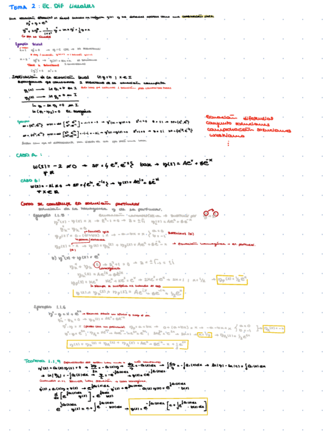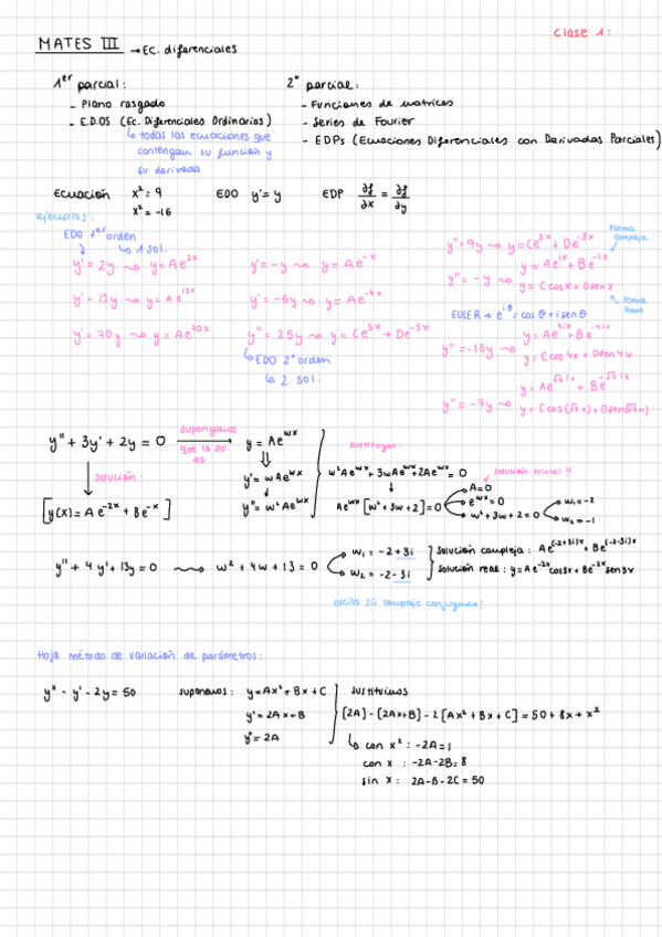 Apuntes de clase Tema 2: Ecuaciones Diferenciales Lineales. Matemáticas III. PRIMER PARCIAL - Examen 1