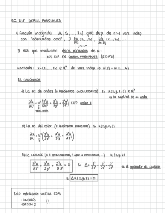 Apuntes Tema 9: ecuaciones diferenciales en derivadas parciales. Matemáticas III. SEGUNDO PARCIAL - Examen 2