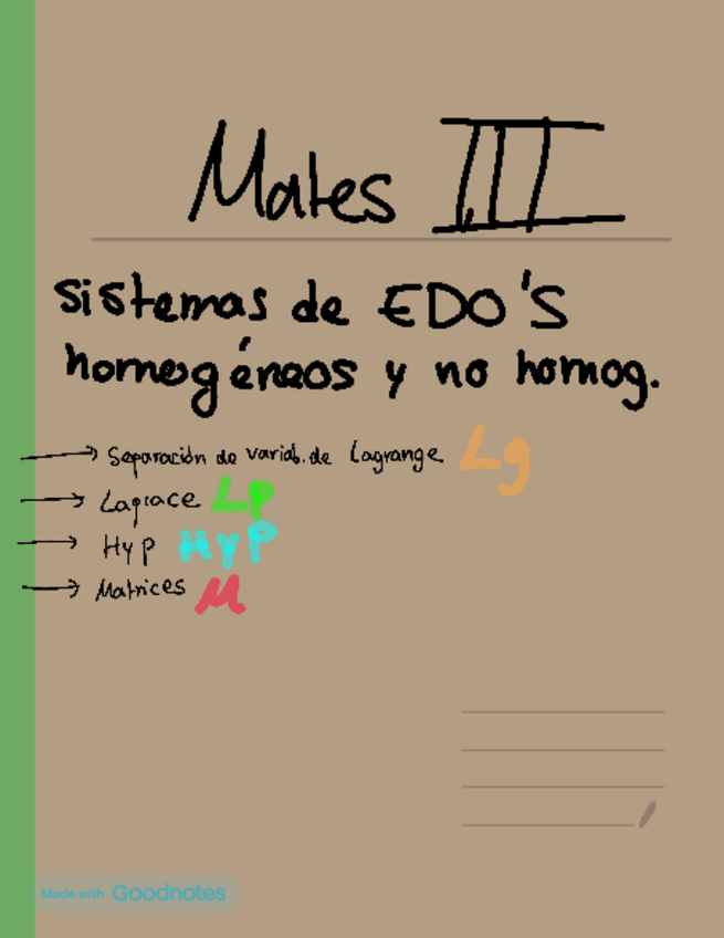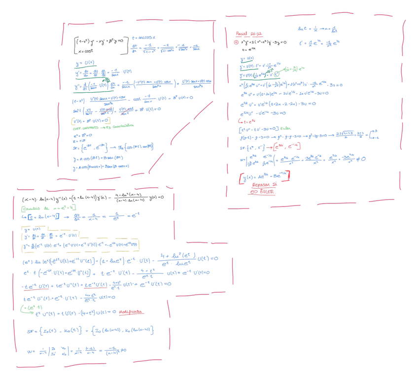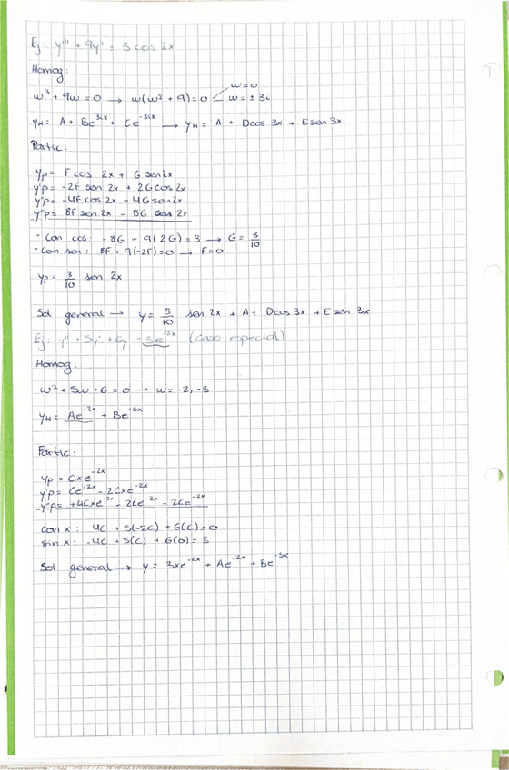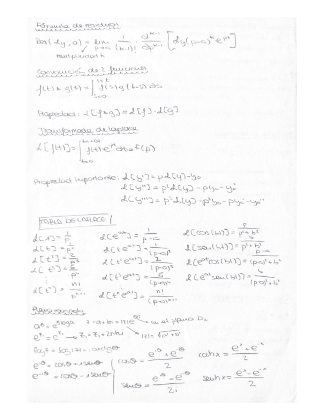 Incluye: Homogenea y particular, Wronskiano y Lagrange, Laplace, Fórmula de Residuos, Convolución de 2 Funciones, SFS, Plano Rasgado, Fórmulas Trigonométricas, Ecuaciones Diferenciales Separables