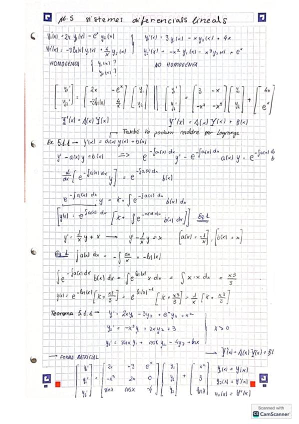 Apuntes clase de teoría Tema 5: Sistemas Diferenciales Lineales. Matemáticas III