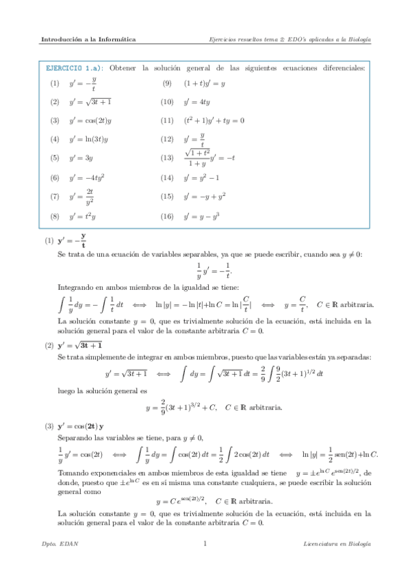 EDOs con su resolución (Tema 1)