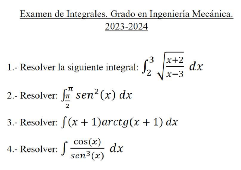 He publicado nuevos examenes de 2º Matemáticas IV: Examen-integrales.pdf