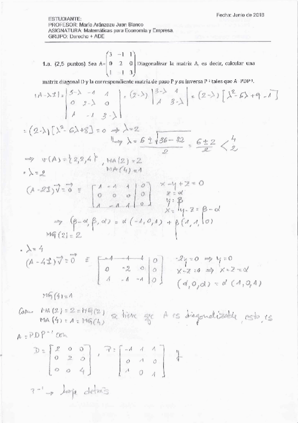 He publicado nuevos examenes de 1º Matemáticas para Economía y Empresa: Exámenes años anteriores